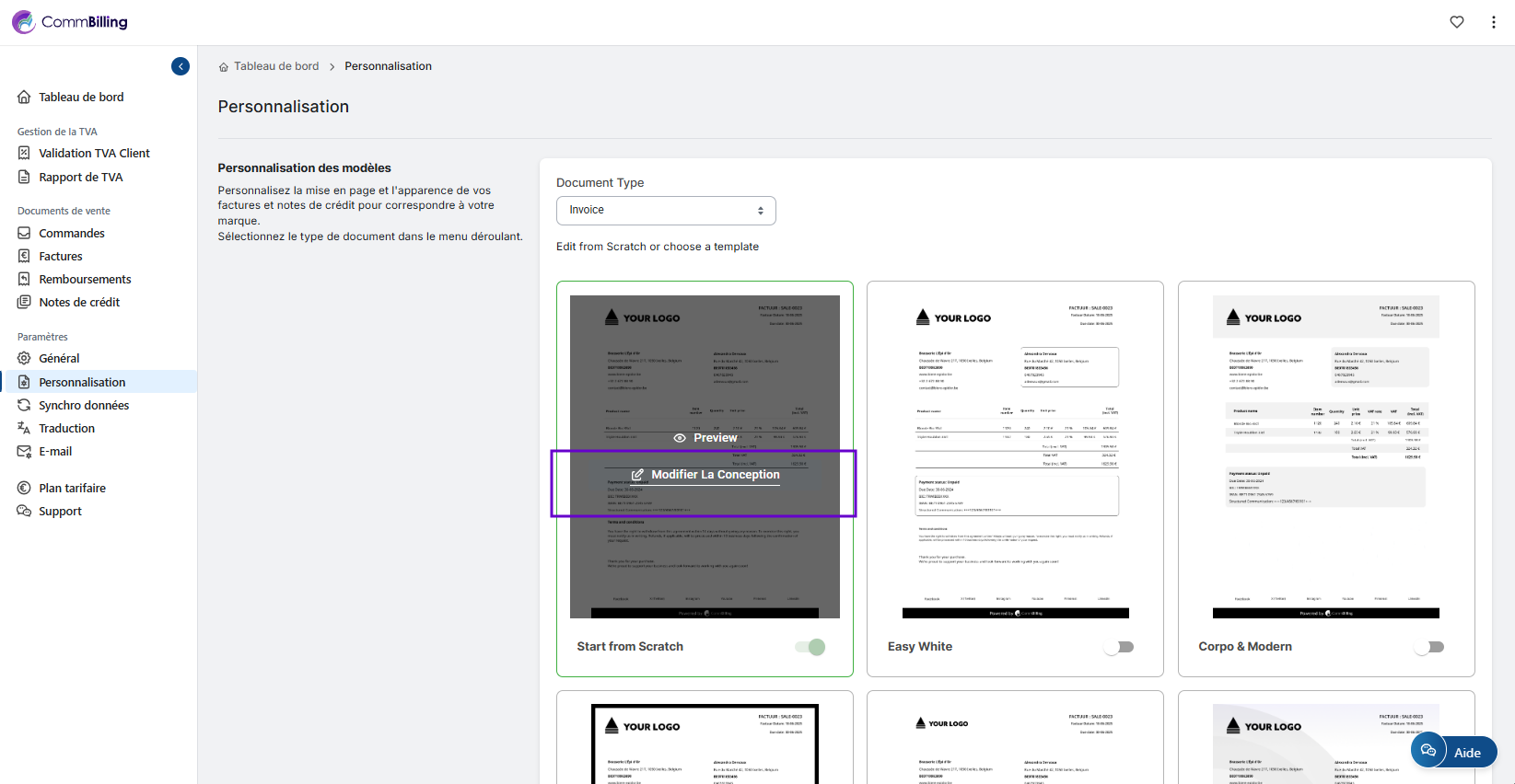En gérant les champs qui apparaissent sur vos factures vous garantissez que vos documents restent pertinents clairs et professionnels. CommBilling vous offre la flexibilité d adapter chaque facture aux besoins de votre entreprise tout en conservant une image de marque cohérente dans l ensemble de vos communications clients.