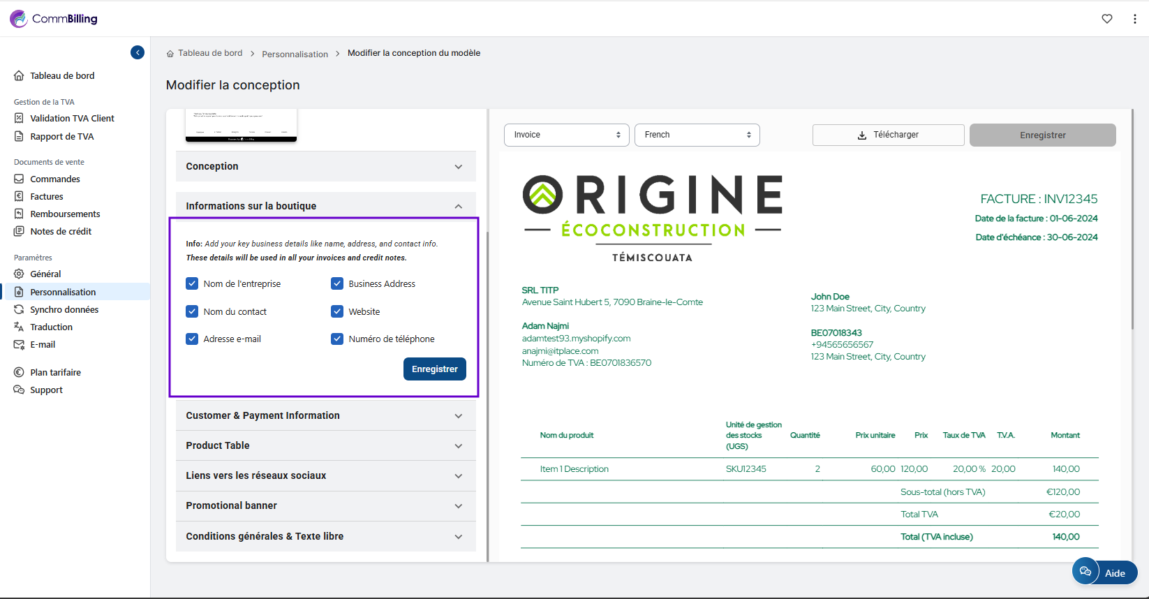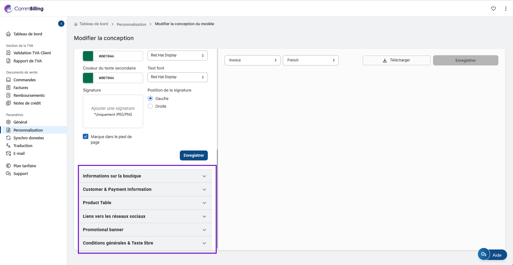 Comment Ajouter ou retirer les informations visibles sur mes factures