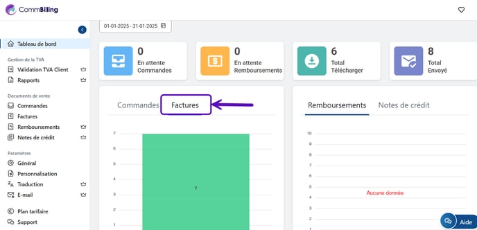 Si vous avez besoin d'informations plus détaillées, accédez à l'onglet Factures dans le menu principal pour un aperçu détaillé de toutes les factures créées pendant cette période.