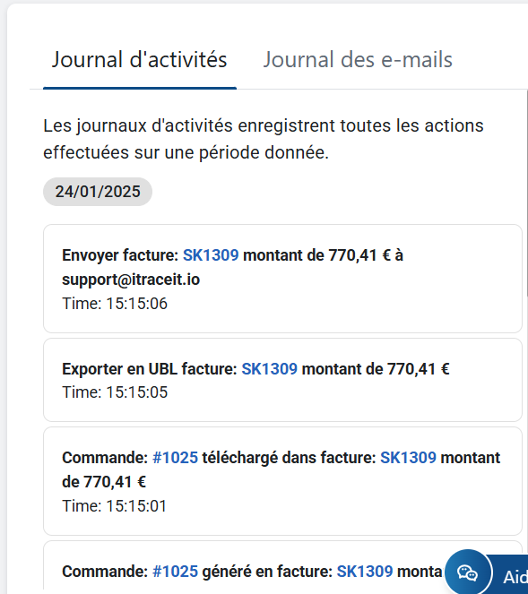 Journal d'activité et historique des e-mails