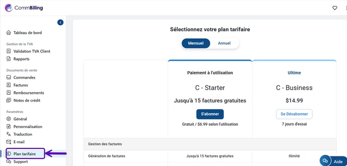 Si vous vous réabonnez au Plan C-Business, l'essai gratuit ne sera plus disponible, et les frais commenceront immédiatement après l'abonnement.