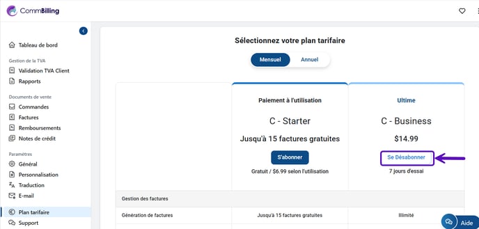 L'annulation de votre abonnement CommBilling est simple. Vous conserverez l'accès jusqu'à la fin du cycle de facturation, et vous pouvez vous réabonner à tout moment si nécessaire.