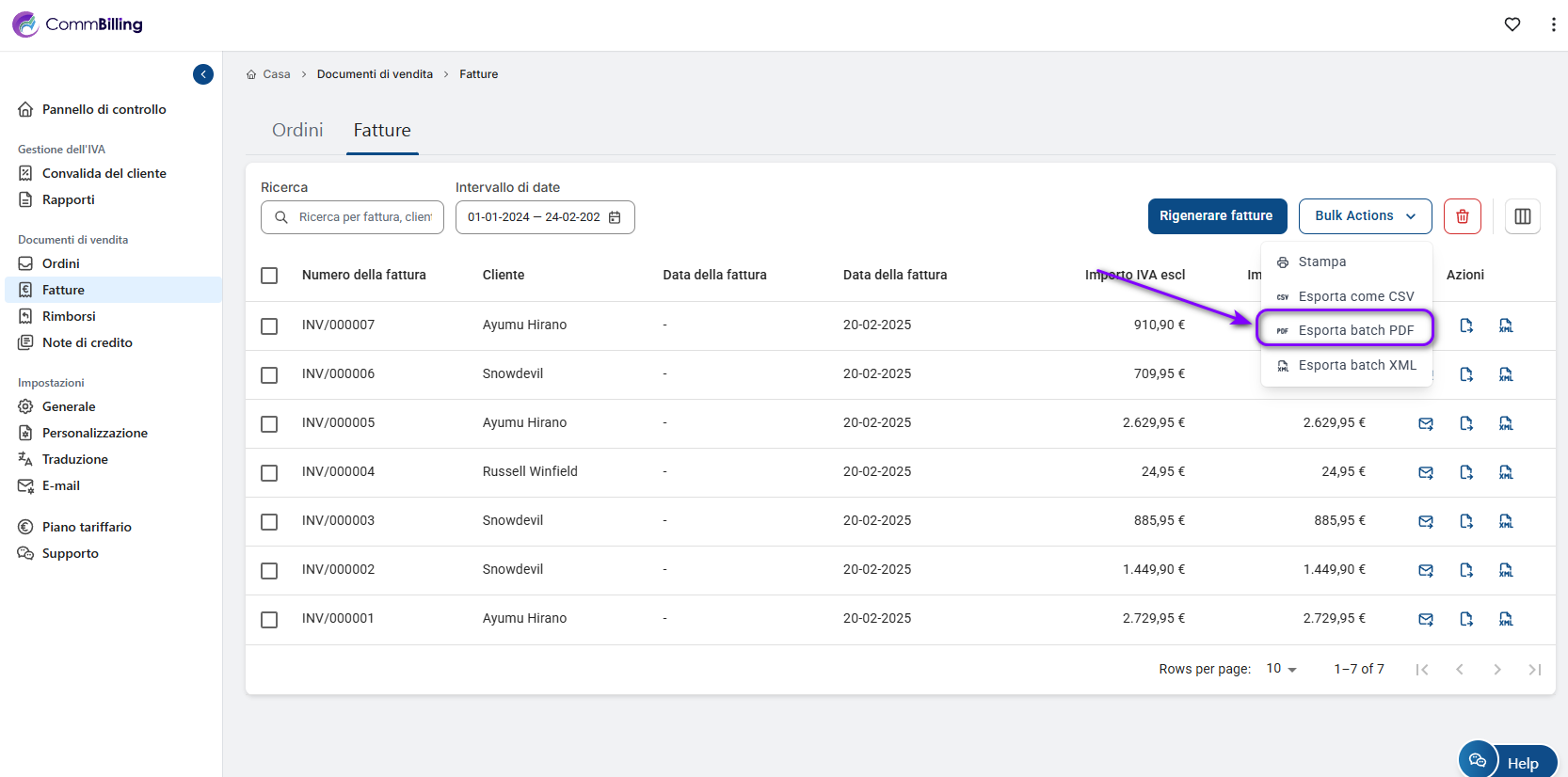 Come esportare fatture in PDF in batch