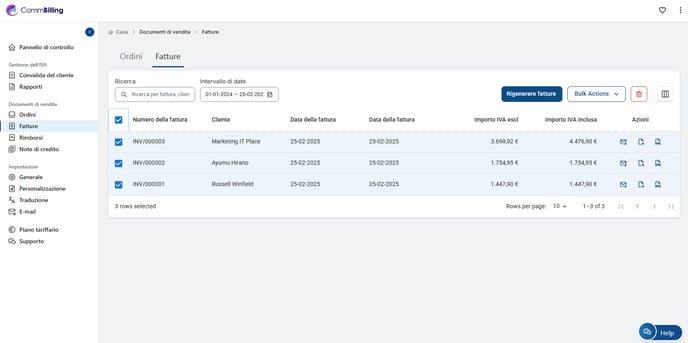 3. Selezionare le fatture che si desidera esportare.