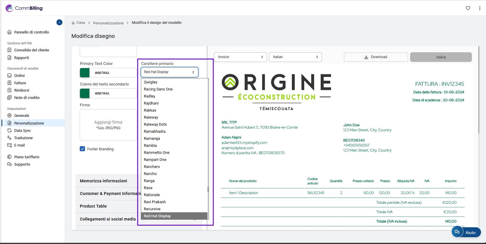Segui questa guida passo dopo passo per modificare i caratteri delle tue fatture.