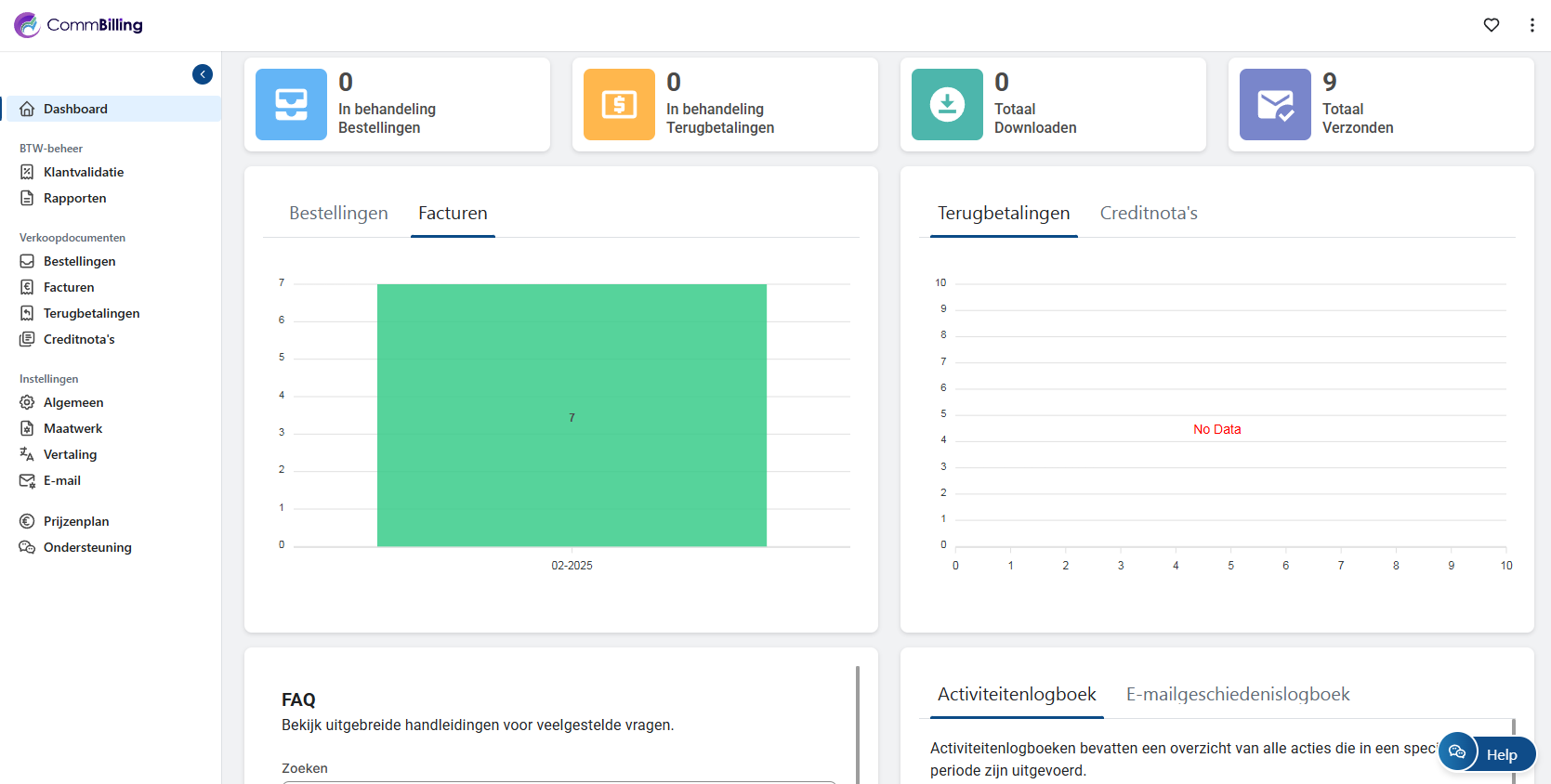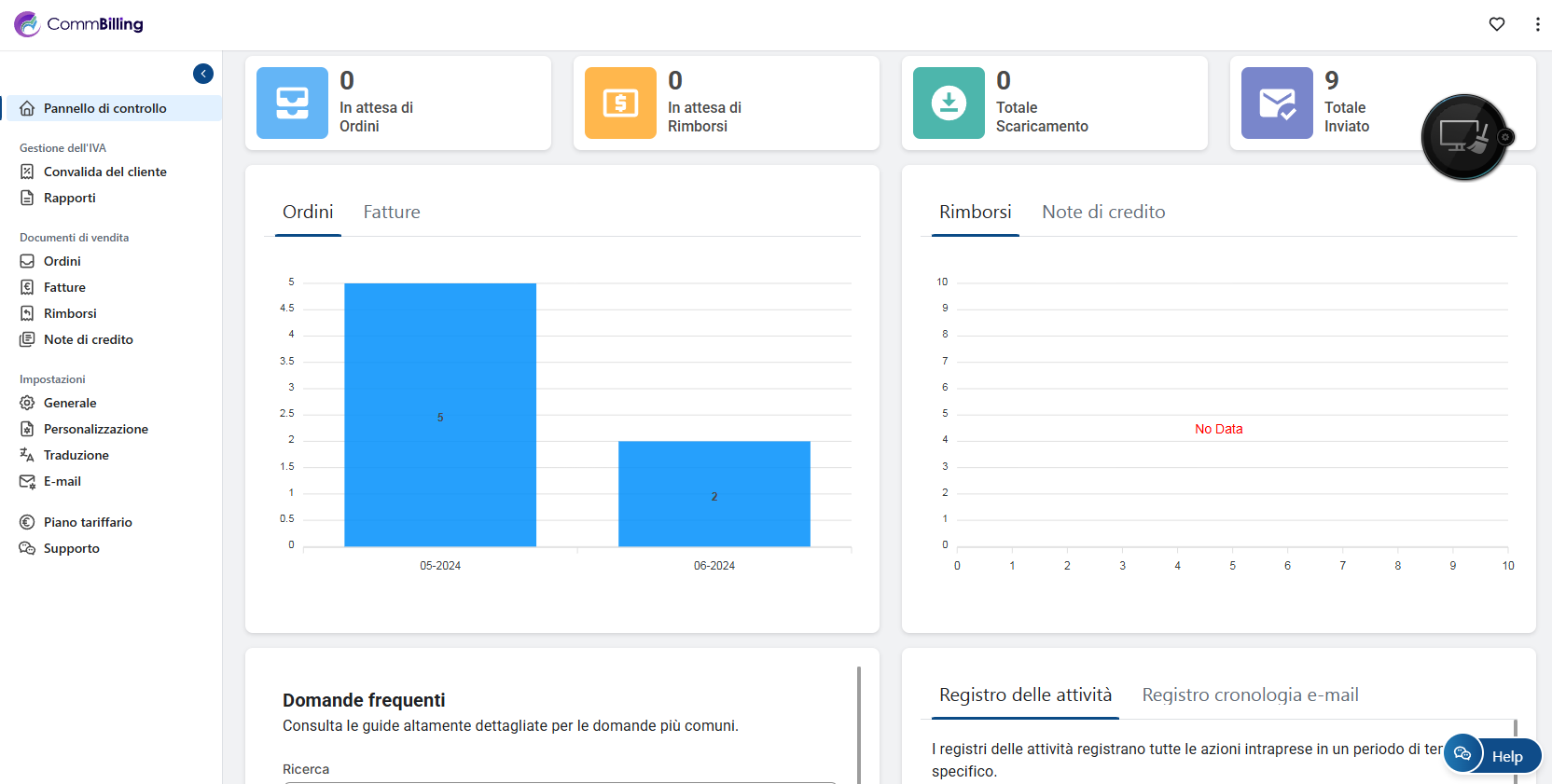 CommBilling consente di monitorare il numero di fatture generate nel mese corrente direttamente dal cruscotto.