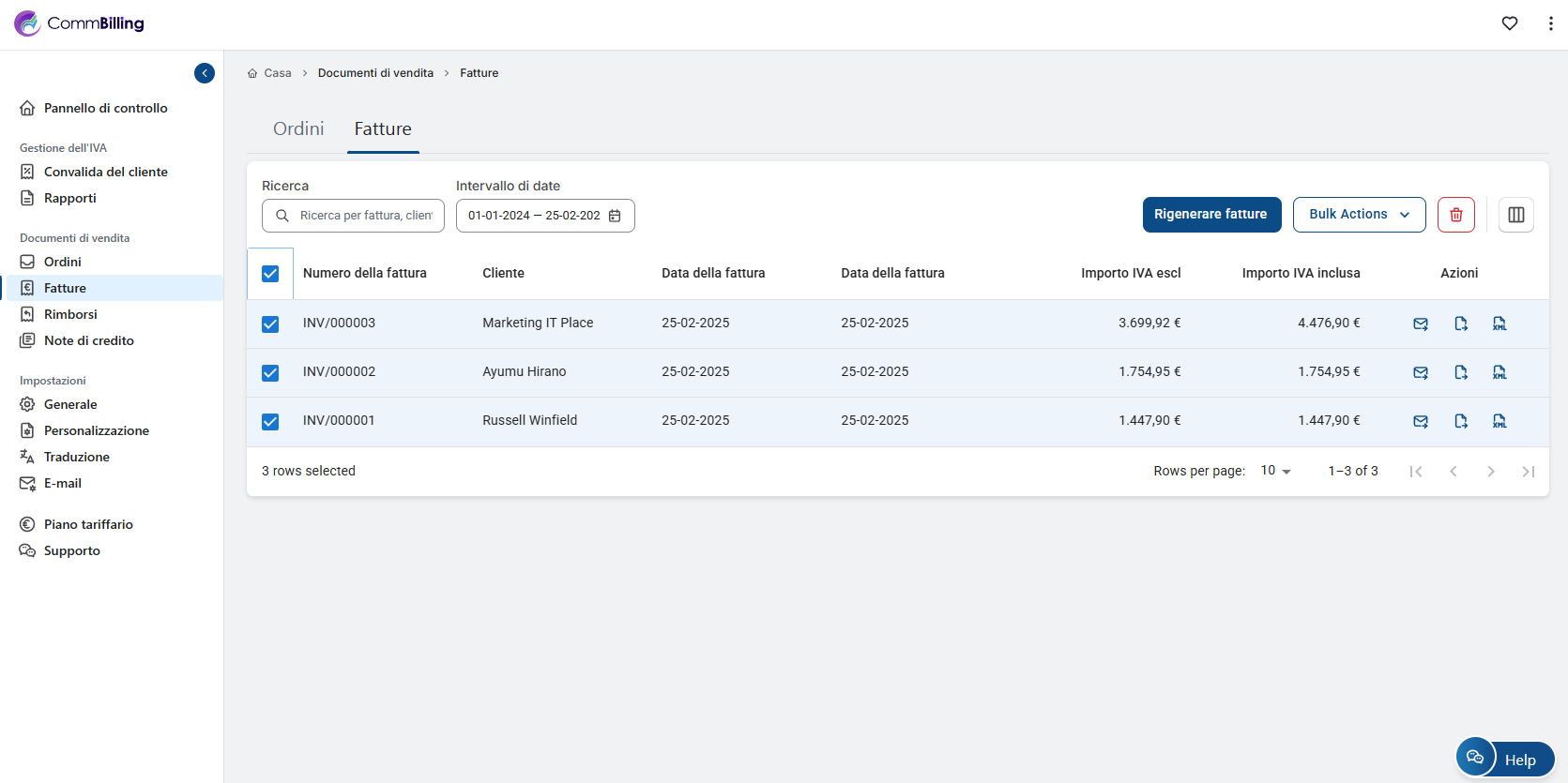 5. Una volta selezionata l'azione, CommBilling scaricherà le fatture