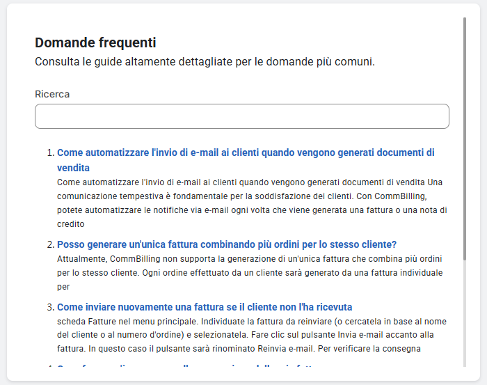 La sezione FAQ risponde alle domande più comuni su CommBilling in generale.