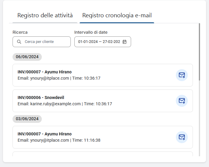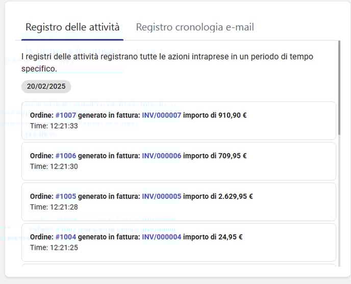 Registro attività e cronologia e-mail