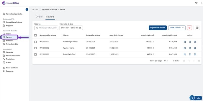 La sezione Documenti di vendita di CommBilling è il luogo centrale per la gestione di tutti gli ordini, le fatture, i rimborsi e le note di credito. A seconda del piano, le sotto-tabelle disponibili variano: