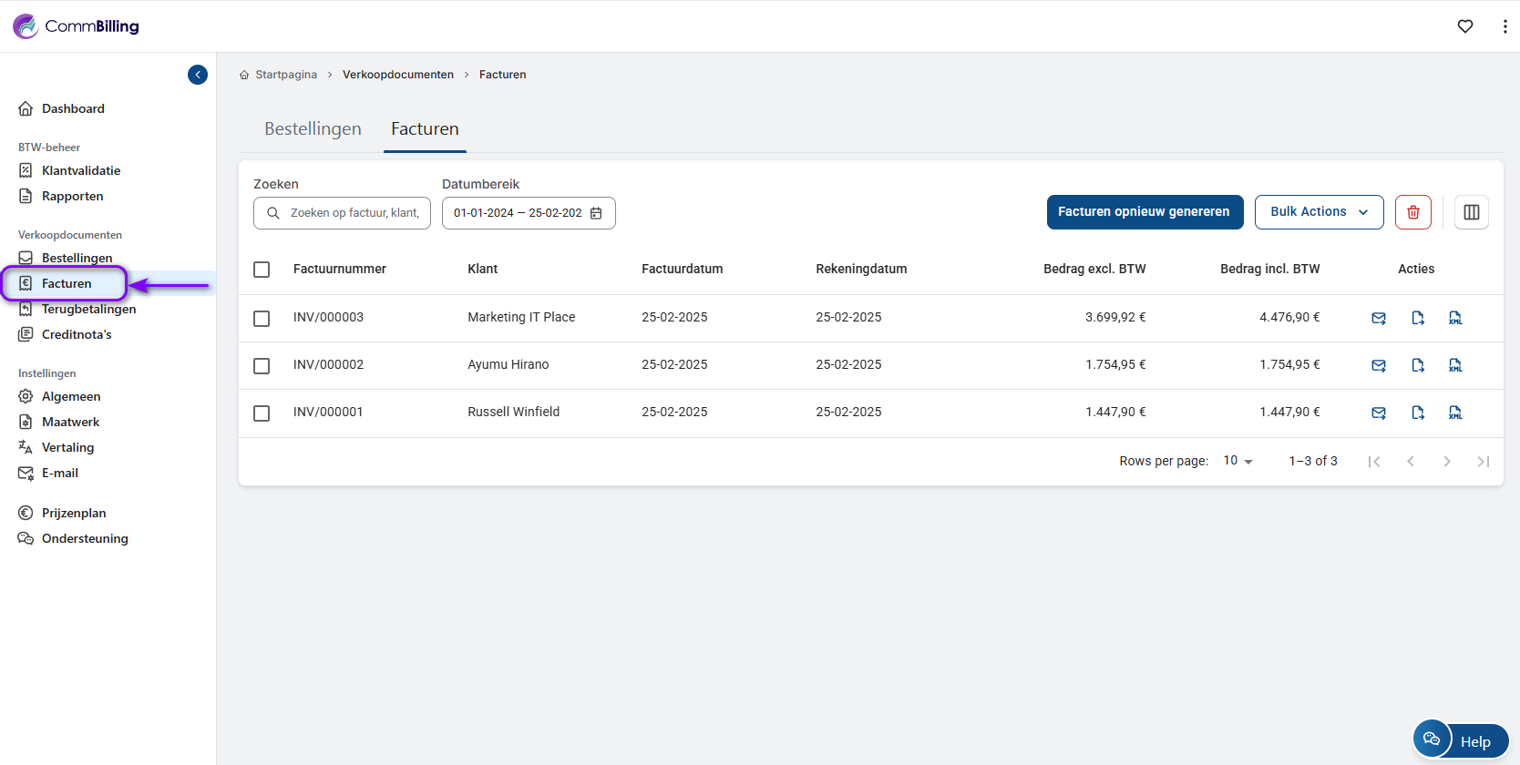 - Navigeer naar het tabblad Facturen in het hoofdmenu.