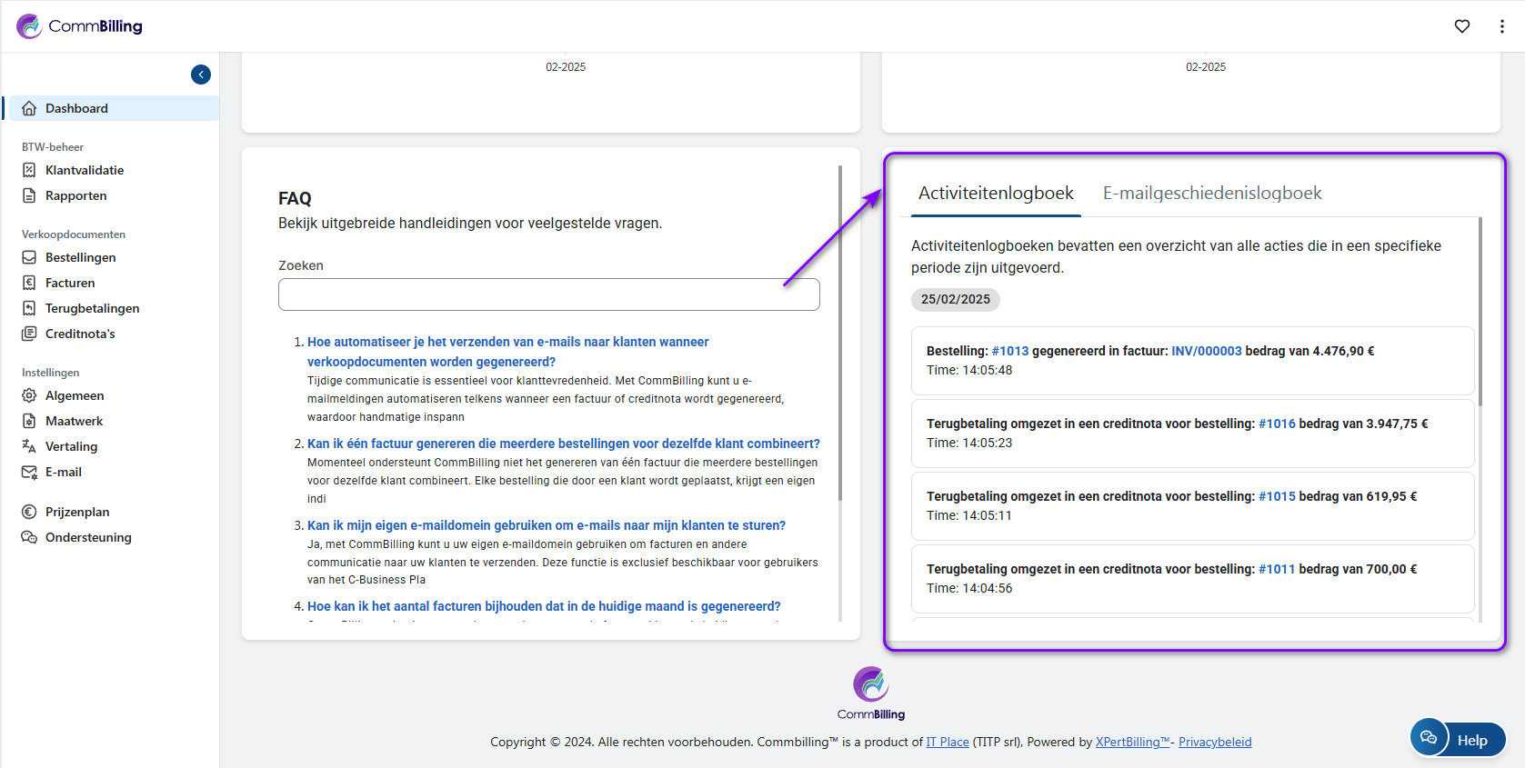 Het activiteitenlogboek bijhouden in CommBilling