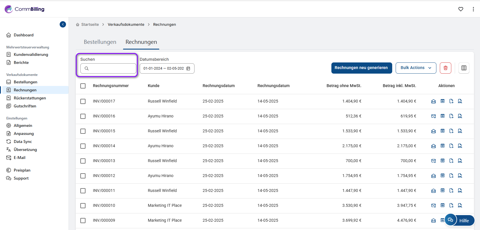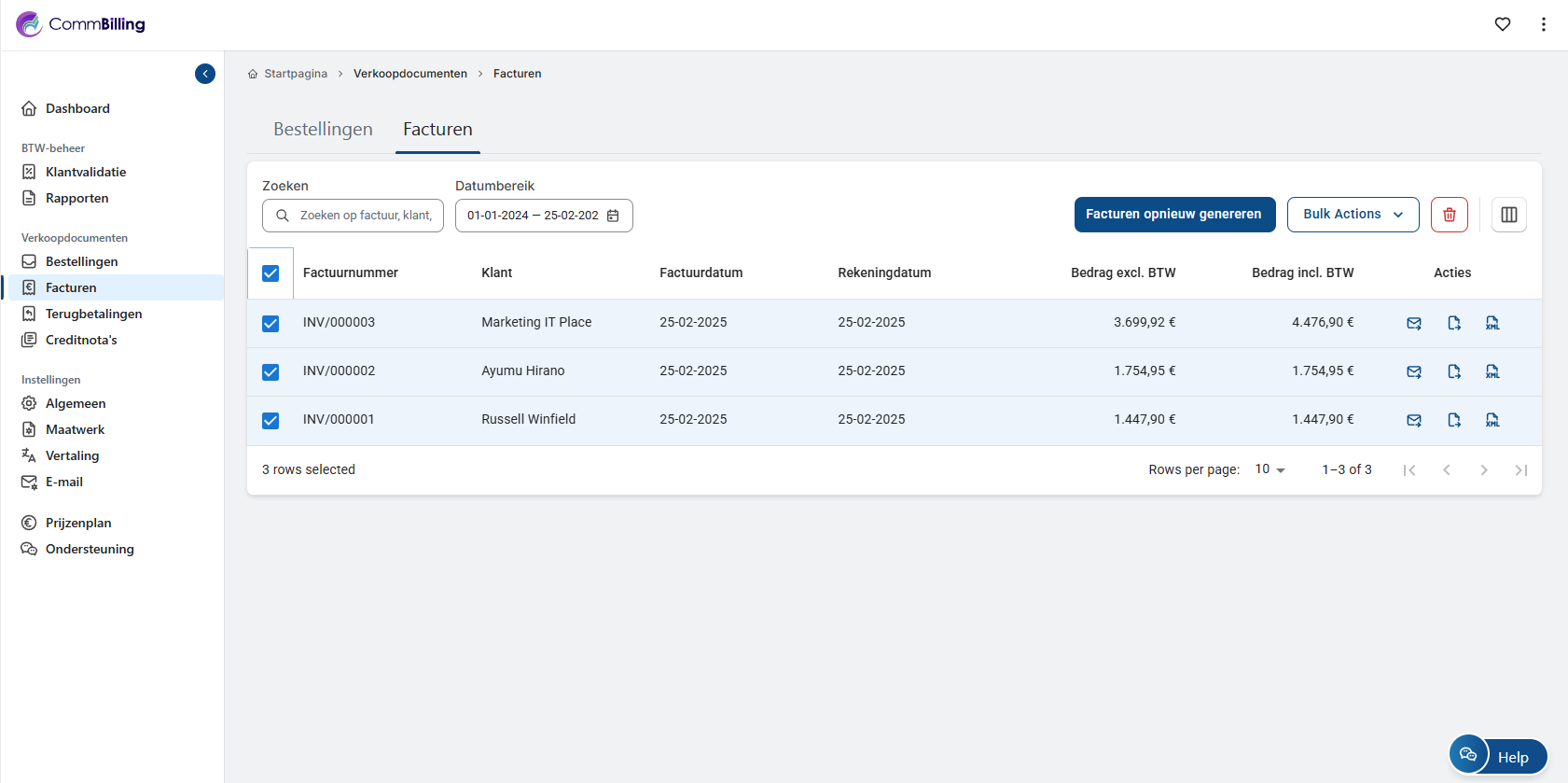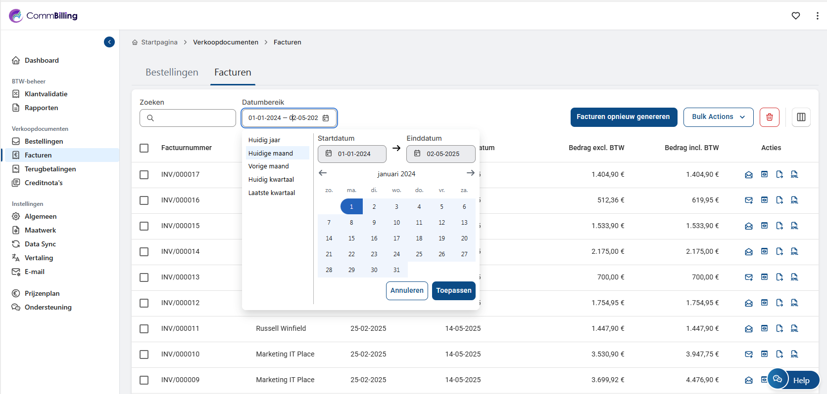 - Stap 4: Zodra het filter is toegepast, toont het systeem alle facturen die binnen de geselecteerde periode zijn gegenereerd.