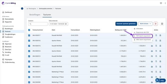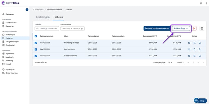 4. Klik op Bulkactie bovenaan de factuurlijst.