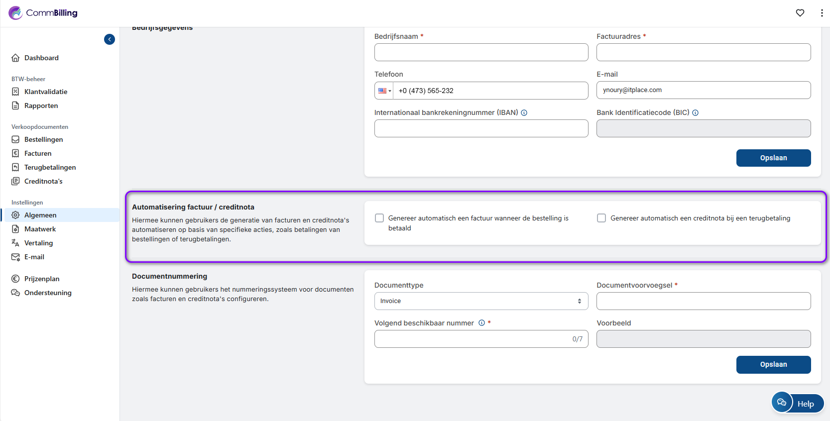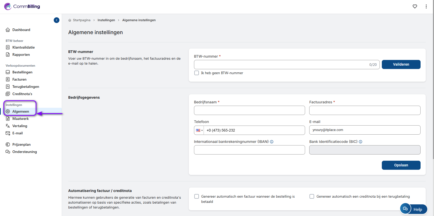 - Stap 1: Navigeer naar het tabblad Instellingen in CommBilling.