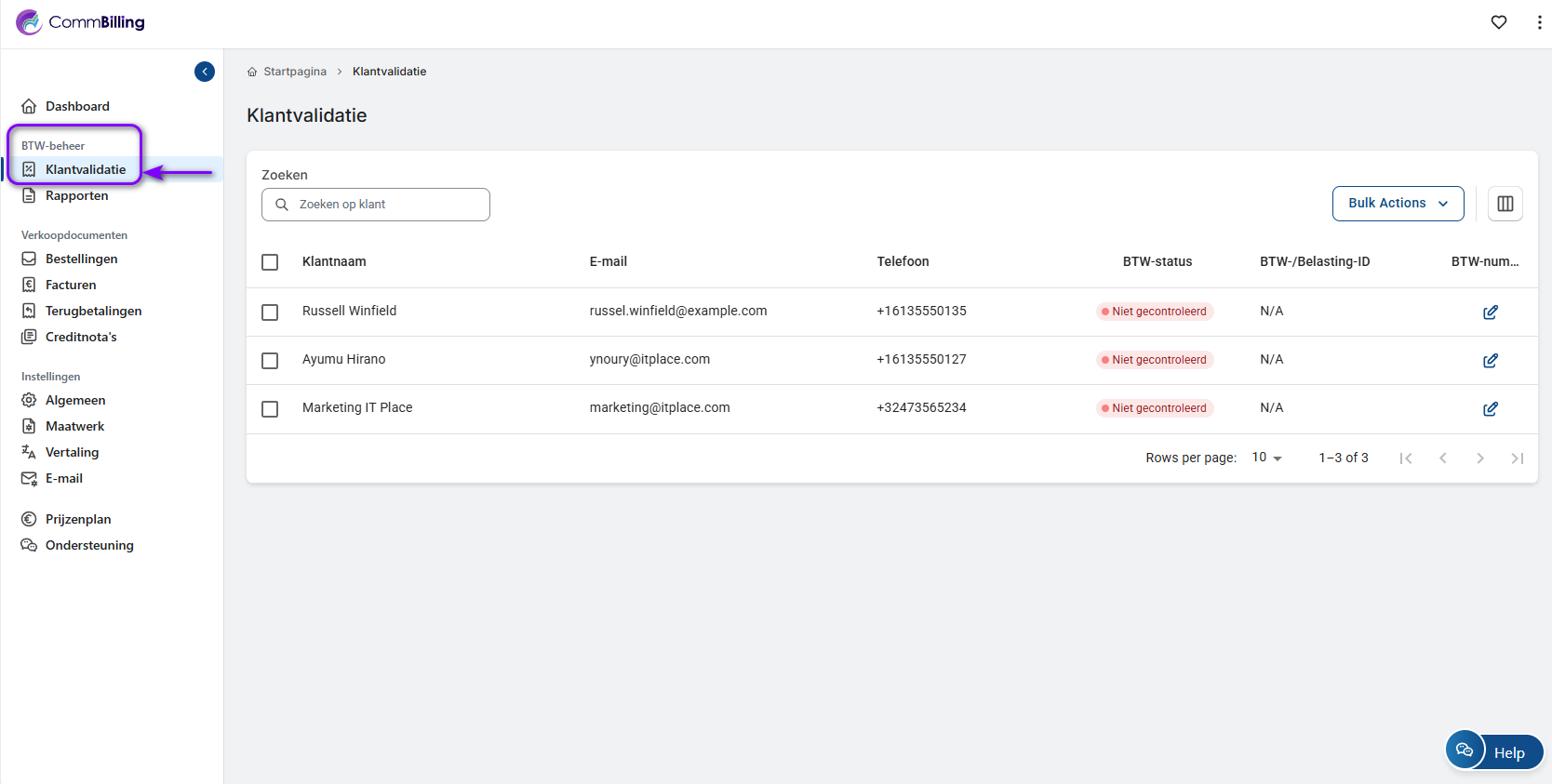 Het valideren van Europese btw-nummers voor uw klanten is essentieel om te zorgen voor naleving van de belastingvoorschriften. Volg deze stappen om het btw-nummer van een klant toe te voegen en te valideren met behulp van de functie Btw-beheer van CommBilling: