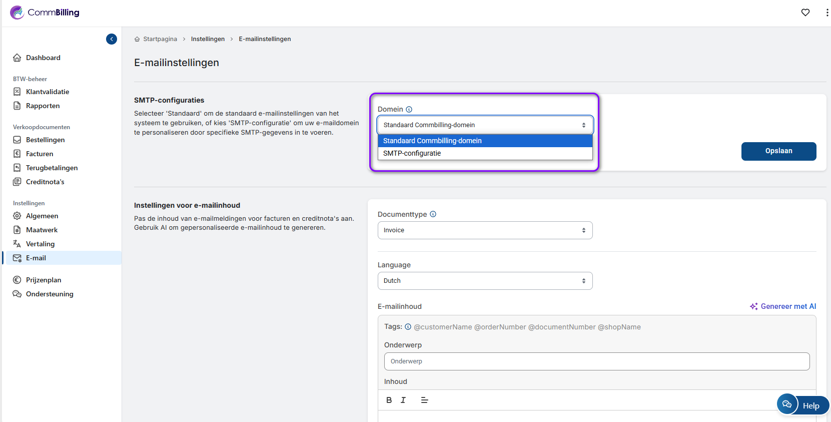 Het gebruik van uw eigen e-maildomein in CommBilling verbetert de professionaliteit en het vertrouwen in uw klantcommunicatie. Door de bovenstaande stappen te volgen, kunt u uw aangepaste e-maildomein instellen en volledig profiteren van deze functie die beschikbaar is met het C-Business Plan.
