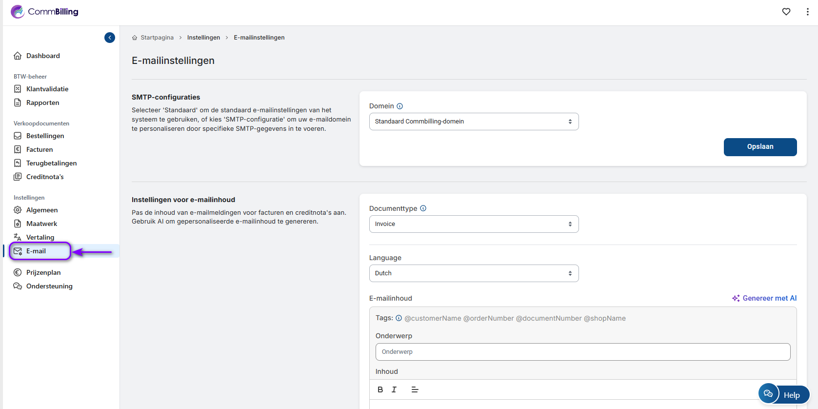 Ja, met CommBilling kunt u uw eigen e-maildomein gebruiken om facturen en andere communicatie naar uw klanten te verzenden. Deze functie is exclusief beschikbaar voor gebruikers van het C-Business Plan, waardoor u de professionaliteit kunt verbeteren en de merkconsistentie in uw klantcommunicatie kunt behouden.