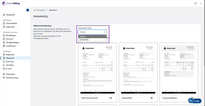 - Stap 2: Selecteer het documenttype dat u wilt bewerken, zoals Factuur of Creditnota.