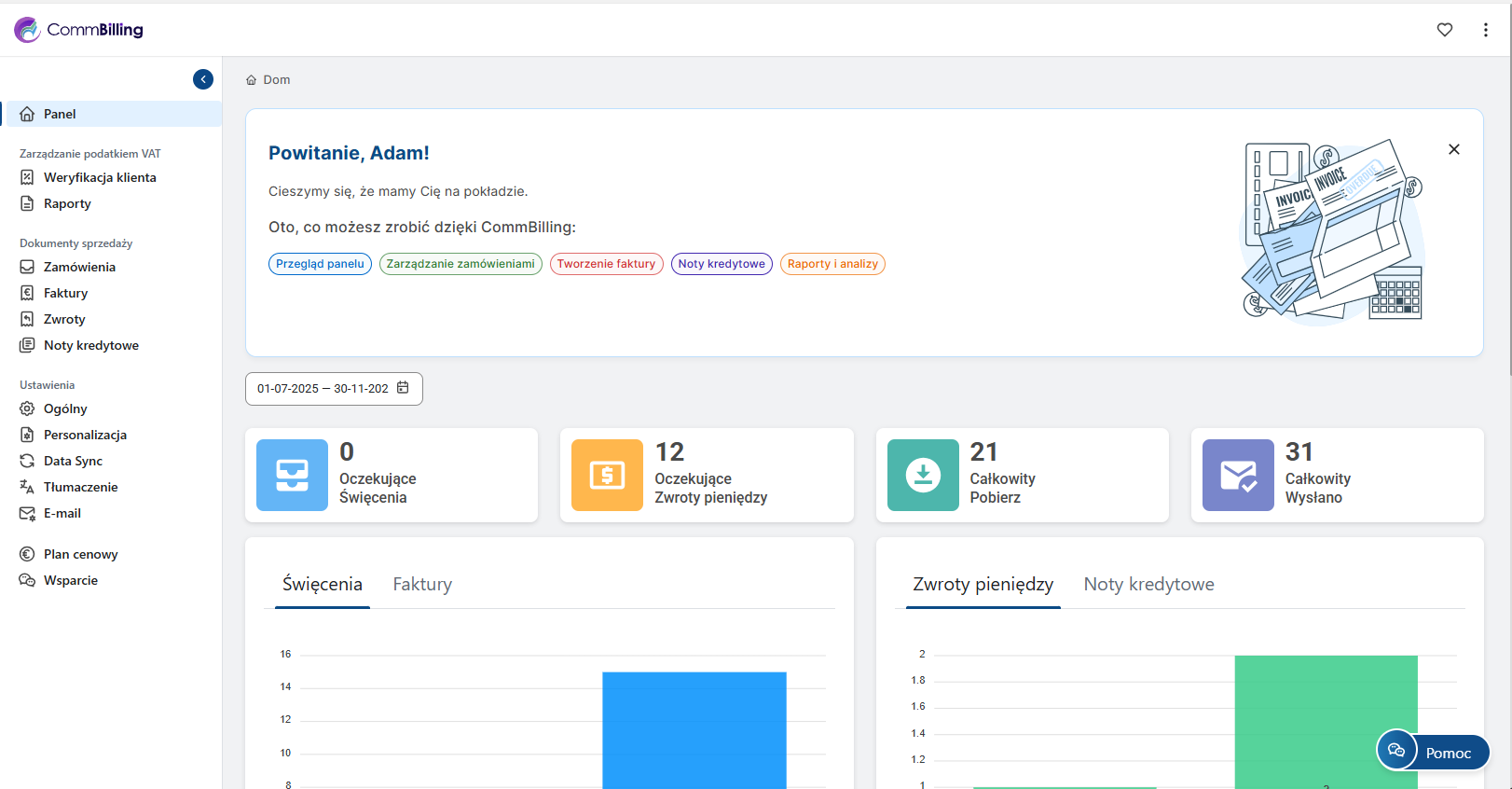 - Po zakończeniu płatności zostaniesz przekierowany do panelu głównego CommBilling.
