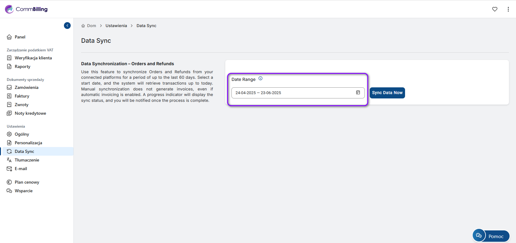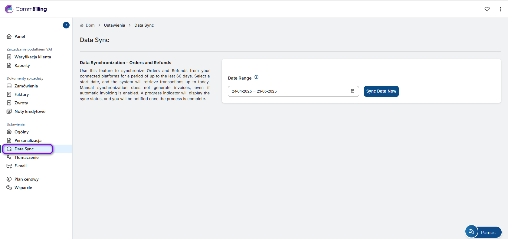 Utrzymywanie synchronizacji danych jest kluczowe dla dokładnego fakturowania, płynnych operacji i zgodności z wymogami sprawozdawczości finansowej. Niezależnie od tego, czy właśnie zaktualizowałeś dane w Shopify, czy zauważyłeś rozbieżność w panelu CommBilling, funkcja ręcznej synchronizacji umożliwia pobranie brakujących danych zamówień i zwrotów za pomocą zaledwie kilku kliknięć.