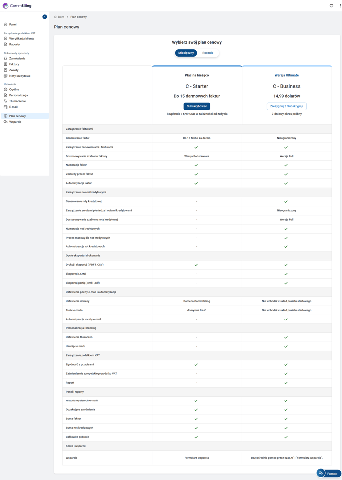 Plan subskrypcji CommBilling C-Business