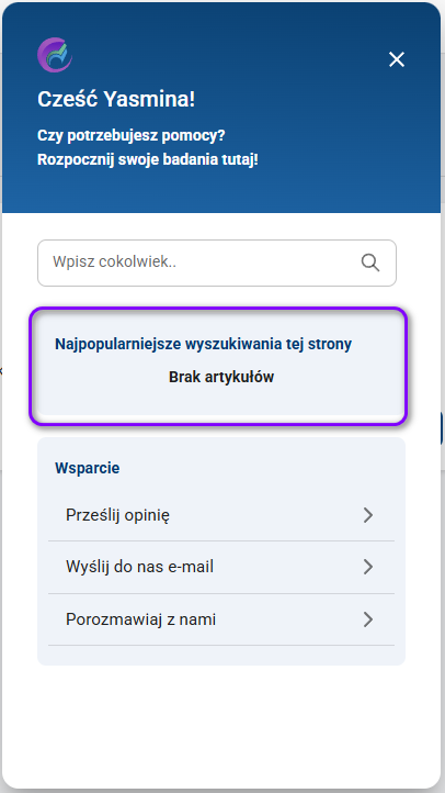 Bezpośrednio poniżej paska wyszukiwania znajduje się sekcja, która wyróżnia 3 najczęstsze wyszukiwania, dając Ci szybki dostęp do najpopularniejszych tematów, których szukają inni użytkownicy. Pomaga to szybko znaleźć odpowiednie informacje, jeśli masz do czynienia z powszechnym problemem.