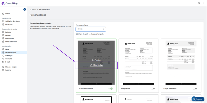 - Passo 3: Passe o cursor sobre o modelo pretendido e clique em “Editar Design”.