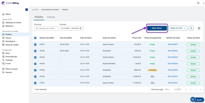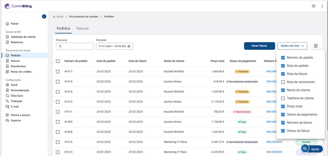 - Ações em Lote: Realize exportações em lote ou imprima várias faturas de uma vez.