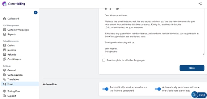 4. Etkinleştirildikten sonra, bir kredi notu düzenlenir düzenlenmez müşteriye iade ile ilgili ayrıntıları içeren bir e-posta bildirimi gönderilecektir.