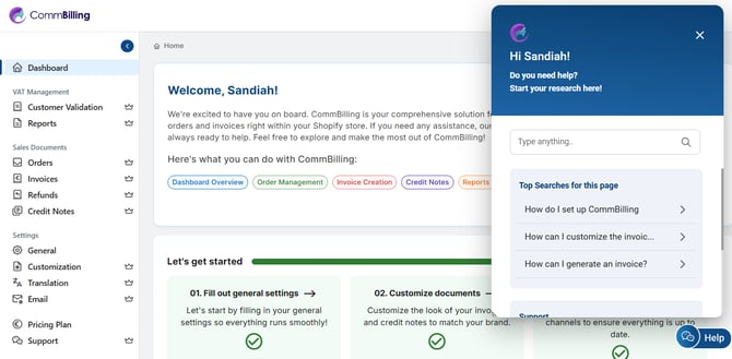 CommBilling'deki Destek Sekmesi ve Yardım Düğmesi, sorunsuz ve etkili bir destek deneyimi sağlamak için birlikte çalışır. Yardıma erişmenin birden fazla yolu ve 24 iş saati içinde yanıt verme taahhüdü ile CommBilling'in sorunlarınızı hızlı ve etkili bir şekilde çözmenize yardımcı olacağına güvenebilirsiniz.