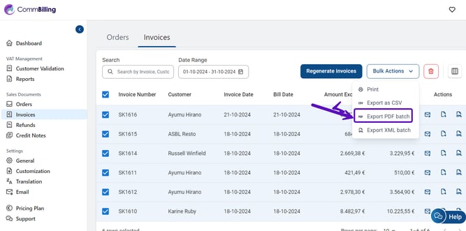 Faturaları PDF olarak dışa aktarmak, resmi kayıtlar oluşturmanız, faturaları müşterilerle paylaşmanız veya denetim amacıyla saklamanız gerektiğinde kullanışlıdır. CommBilling'i kullanarak faturalarınızı PDF olarak nasıl dışa aktaracağınız aşağıda açıklanmıştır: