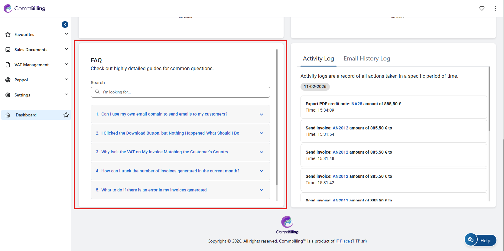 SSS bölümü sık sorulan sorulara, makalelere ve kılavuzlara hızlı erişim sağlar. Burada, yaygın sorunlara çözümler, CommBilling'in özelliklerini en üst düzeye çıkarmaya yönelik ipuçları ve sorun giderme tavsiyeleri bulacaksınız. Bu bölüm, ihtiyacınız olan desteğin parmaklarınızın ucunda olmasını sağlamak için sürekli olarak güncellenmektedir.