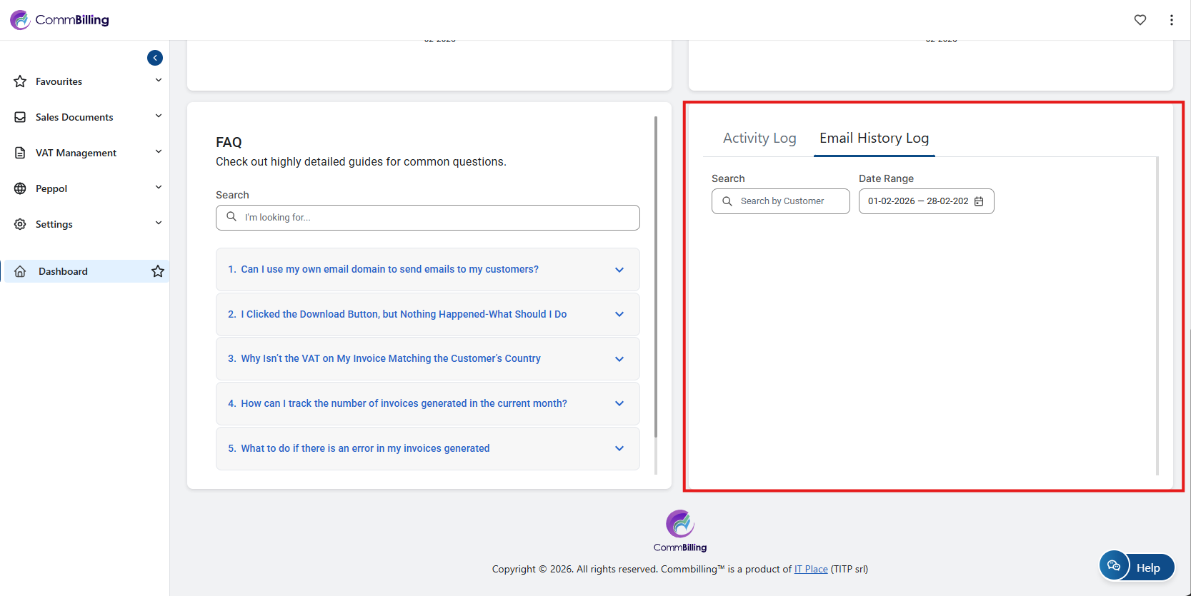E-posta Geçmişi Günlüğü, faturalar, kredi notları ve ödeme hatırlatıcıları dahil olmak üzere faturalama ile ilgili tüm giden e-postaları izlemenizi sağlar. Her e-postanın durumunu (örneğin, gönderildi, teslim edildi, başarısız oldu) izleyebilir ve müşterilerinizin fatura belgelerini zamanında almalarını sağlayabilirsiniz. Bu bölüm, siz ve müşterileriniz arasında eksiksiz bir iletişim kaydı sağlayarak size huzur verir.